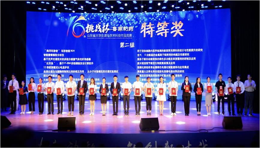 第十六届“挑战杯”鲁南制药山东省大学生课外学术科技作品竞赛由共青团山东省委、山东省科学技术协会、山东省教育厅、山东省科学技术厅、山东社会科学院、山东省学生联合会联合主办,共有来自省内40余所高校的202个项目参加了5月30日在齐鲁工业大学(山东省科学院)长清校区进行的终审决赛。