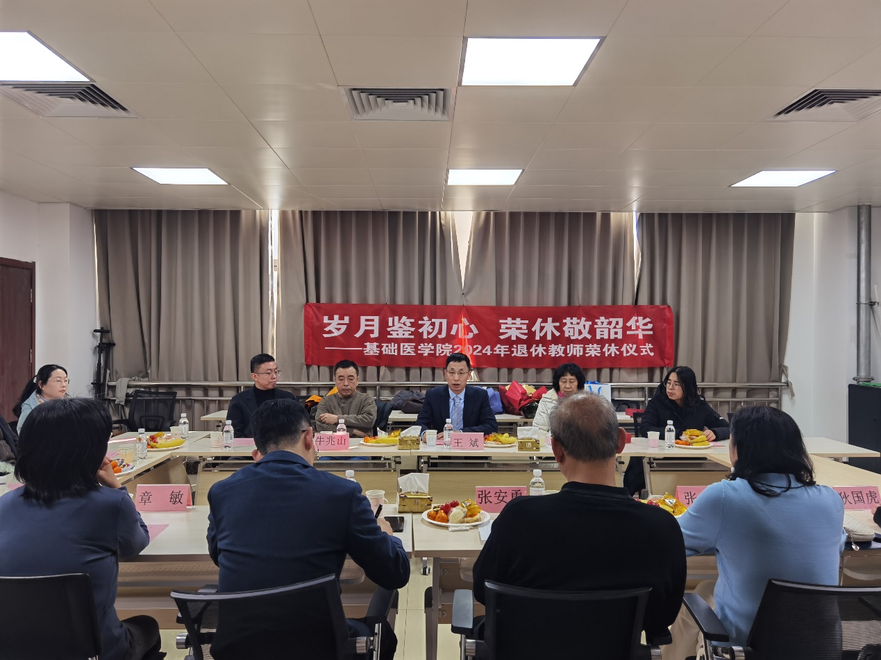 在医学教育综合楼B810隆重举行2024年教师荣休仪式。校离退休党委副书记、副处长张安勇、学院党委书记亓慧、院长张蓓、党委副书记章敏、副院长狄国虎和退休教师出席,学系教师和学生代表参会,会议由党委书记亓慧主持。